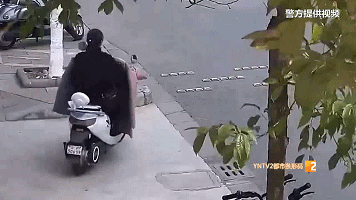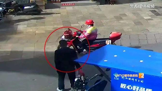 公共视频显示,李女士从银行取钱出来后,把钱装在一个白色手提袋内,便骑上了电动车。
