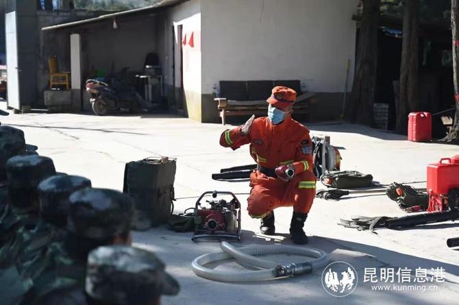 昆明市森林消防支队驻防中队为晋宁扑火队伍培训防灭火技能