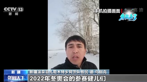 新疆温泉县扎勒木特乡阿茨队牧民 德·乌别克:即将在首都北京举办的2022年冬奥会的参赛健儿们,在我们家乡进行了为期一个半月的训练,在这么冷的天气中,他们坚持训练真的很辛苦,奥运健儿们启程参加冬奥会之日,我们骑着骏马挥舞着国旗,以不舍的心情为他们送行,祝他们取得好的成绩。
