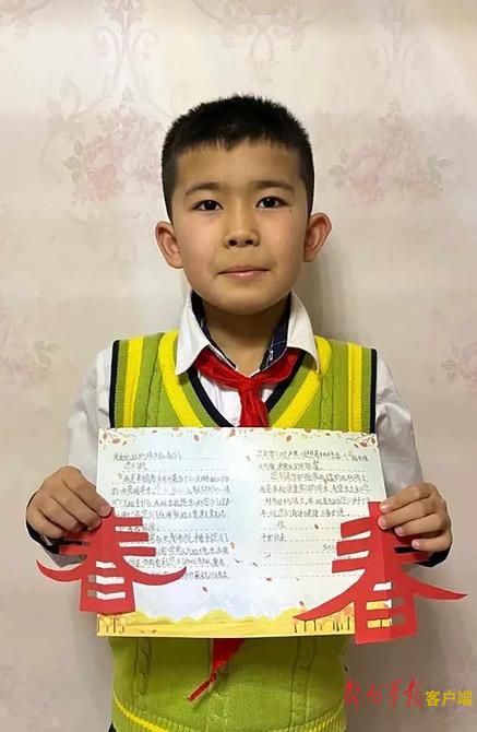 “高原驻训的解放军叔叔你们好,有许多话想对你们说。你们不分昼夜保护着我们的祖国,让我们过上幸福快乐的生活。没有你们的守护就没有人民的安宁生活,没有你们的保障,也就没有国家强大的进步与自信。你们如冬日里的暖阳,把自己的温暖都给了我们,而你们却在寒冷的高原与严寒和风雪对抗……”