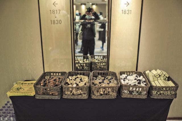 1月14日,北京香格里拉饭店,客厅走廊放着卫生用品以便客人随时取用。 新京报记者 浦峰 摄