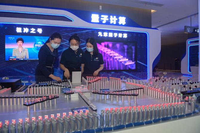 参会人员在合肥举行的2021量子产业大会上参观“九章”量子计算原型机模型(2021年9月18日摄)。 新华社记者 韩旭 摄