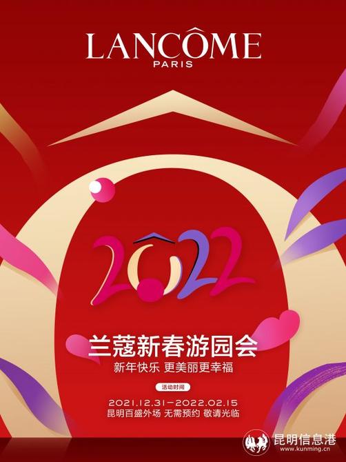 昆明信息港讯 虎年新春如期而至,兰蔻新春游园会焕新而来,将热闹喜庆的新春习俗,赋予独特前卫的创意表达,温馨氛围依旧,摩登设计升级。2021年12月31日至2022年2月15日,兰蔻新春游园会于昆明百盛购物中心焕新启幕,诚挚邀你共度一段愉悦幸福的鸿运之旅,共贺虎年新禧,共启新年美运。