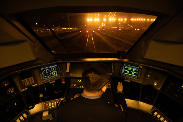 两天内坐8次动车,上车后不是在车厢内来回穿梭,就是在机械师室内盯着一方屏幕查看列车运行情况,这便是随车机械师的工作。