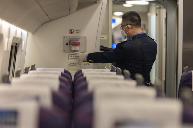 虽然没有乘客,但孙玮纵工作依然忙碌,这段时间他要检查车内服务设施,像电茶炉、座椅、小桌板、行李架、卫生间、洗手台等涉及乘客使用的设备,还要在机械师室内看列车运行情况。