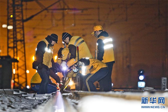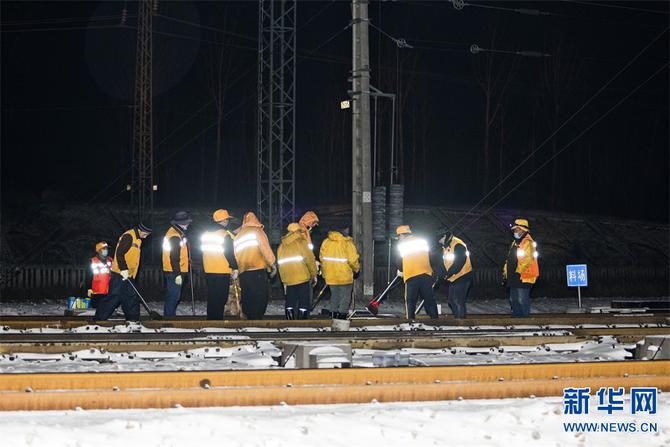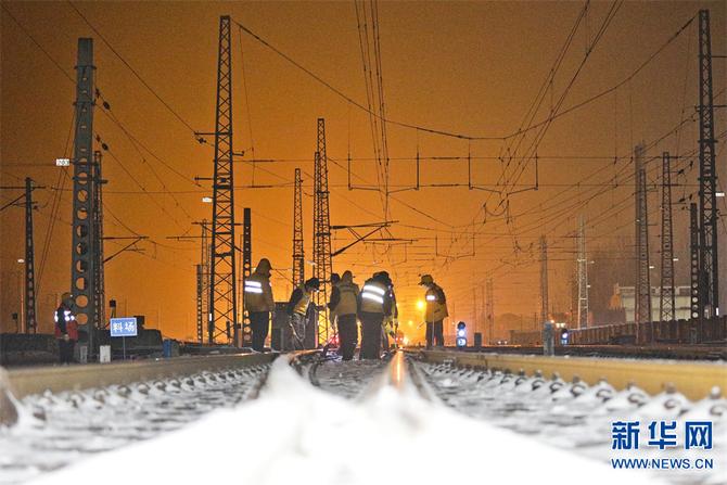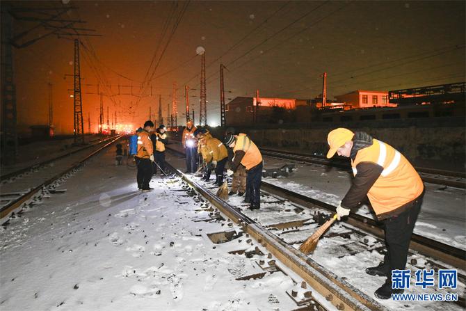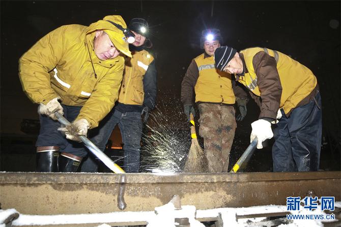 连日来,豫西南迎来较大降雪,焦柳、宁西线的轨道出现积雪。为确保春运线路安全畅通,中国铁路郑州局集团有限公司南阳工务段迅速启动应急预案。党员干部职工闻雪而动,利用临时天窗口,进行打冰除雪作业,确保管内线路设备无积雪、无结冰,确保铁路春运安全有序。新华网发(张中海摄)