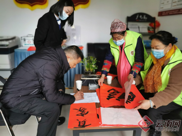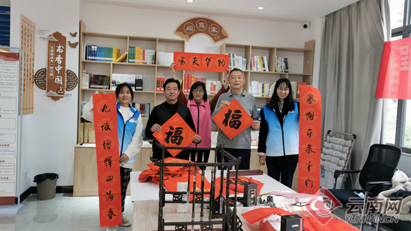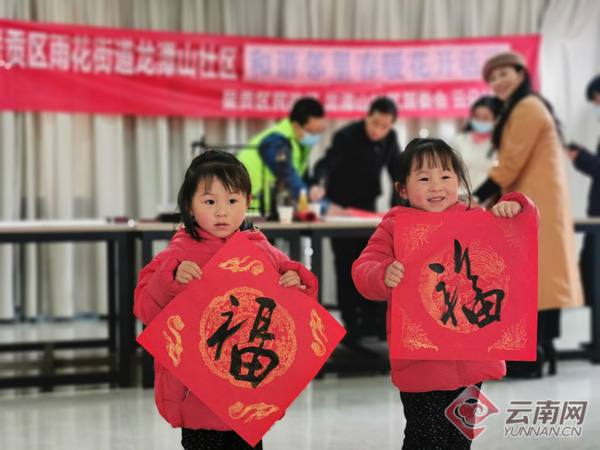 1月26日,昆明市呈贡区雨花街道龙潭山社区居委会、云朵社工站联合云南广播电视台广告管理中心党支部、涵礼物业、浩洋物业、景欣物业,携手居民志愿者、墨儒书画院一起开展一场“和谐邻里·春暖花开”的新春送福活动。