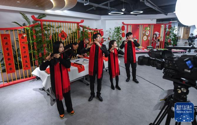 1月26日,浙江省杭州市余杭区中泰街道“云上村晚”线上直播活动在中泰街道新时代文明实践所举行,吸引了在本地过年和在外地过年的人们,通过线上线下共赴文化“家宴”。