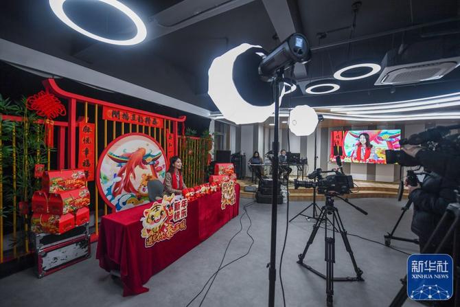 ↑1月26日拍摄的“云上村晚”直播现场。