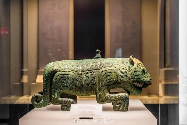 江西省博物馆的镇馆之宝“商代伏鸟双尾青铜虎”。
