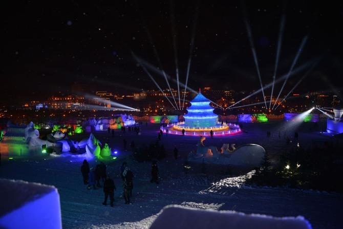 游客在阿尔山市冰雪节期间参观冰雪雕塑。新华社记者 邹予 摄