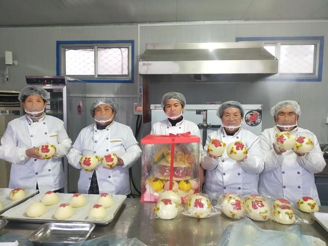 “取经”归来后,徐士雁将村内闲置的办公室改造成生产车间,采购了花馍制作设备,聘用村里7名爱好面食制作的妇女,一起研究适合周边群众消费习惯的花馍制作方法。就这样,一群平均年龄超过60岁的农村妇女开启了再就业之路。经过反复练习,她们的技艺越来越醇熟,揉捏搓拉剪之间,一个个鱼、桃、苹果、福袋等样式各异的花馍跃然案板之上。