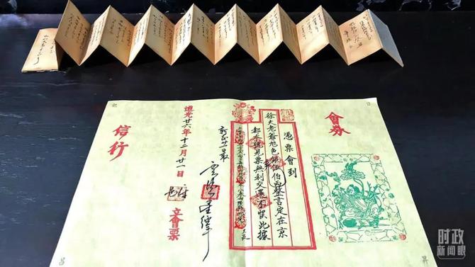 △日昇昌票号博物馆中展出的汇票和账本。(总台央视记者许永松拍摄)