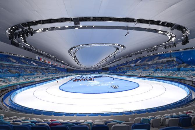 1月28日,运动员们在国家速滑馆“冰丝带”内训练。新华社记者 武巍 摄