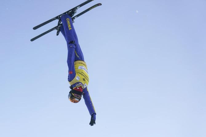 1月12日,徐梦桃在自由式滑雪世界杯女子空中技巧比赛中。新华社/美联