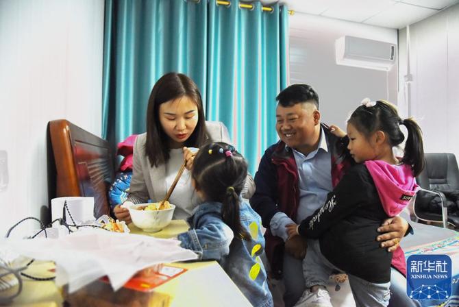 最近,他的妻子和两个女儿来到项目部所在的广东省汕尾市海丰县,一家人在板房宿舍里团聚了。