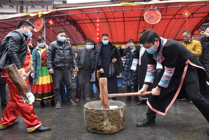 这边煮汤圆热气腾腾,那边打糍粑热火朝天。打糍粑是个体力活,大伙儿轮番接力,一起打出香糯软绵的糍粑。“众人拾柴火焰高,一起打糍粑,共同分享,意义更不一样。”锦绣街道组织委员李平说。