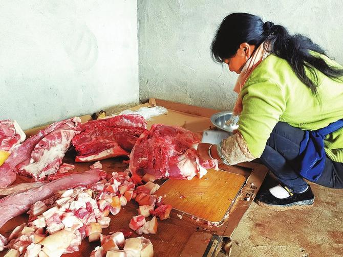 为了庆祝搬新家,村民们特意杀猪宰羊,红烧羊肉、粉蒸肉、酸辣鱼、赶马鸡、全羊汤锅……菜品异常丰盛。佳丽是其中一户,也是当天宴席的主厨,她满脸笑容地告诉记者:“终于盼到了这一天,以后大家住在一起,相互有个照应,热热闹闹的。”