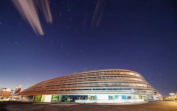 国家速滑馆“冰丝带”与“天宫”同框合影