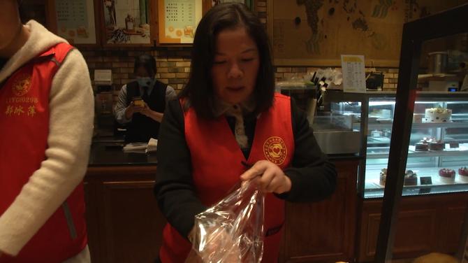 因为大部分面包店里的面包都有规定的销售时间,过了时间无法售卖,但是这些面包仍可食用,于是爱心商家就把面包送给“面包人”行动队。