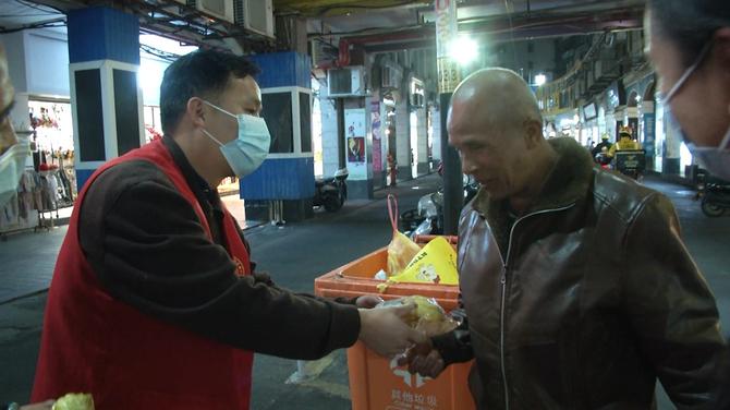 手提面包袋的小伙子叫黄大发,几年前流浪街头,面包服务队了解情况后,根据他聋人的特点,还帮助他找了份餐馆工作,如今心怀感恩的他,晚上忙完工作就会接龙参加“面包人”爱心行动。