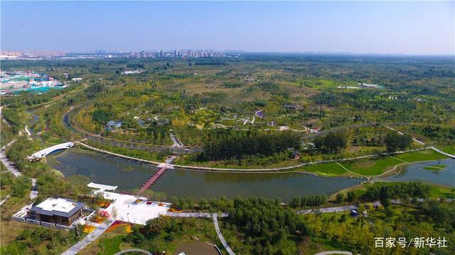 这是2020年9月30日拍摄的位于北京市通州区的城市绿心森林公园(无人机照片)。新华社发(刘宇 摄)