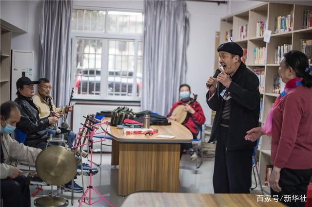 居民在湖北武汉东湖新城社区活动室唱楚剧(2021年3月31日摄)。新华社记者 肖艺九 摄