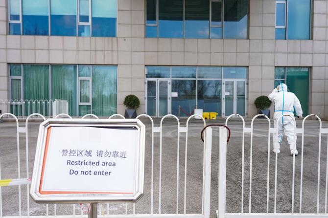 这是1月31日拍摄的首都机场外航接待酒店“红区”入口,外航机组人员从这里进入酒店。新华社记者陈钟昊 摄
