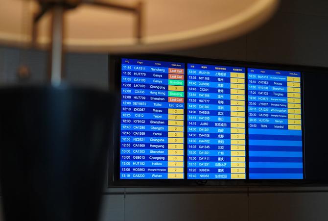 这是1月31日拍摄的酒店里的航班信息显示屏。新华社记者 陈钟昊 摄