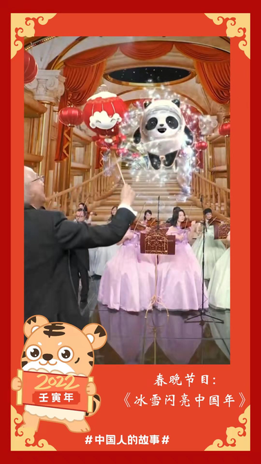 北京2022年冬奥会将于2月4日大年初四盛大开幕。虎年春晚巧着新篇,用创意作品讲好冬奥故事,共赴冰雪之约。国际奥委会主席巴赫首次在央视春晚的舞台上用中文祝大家新春快乐、虎年大吉,并邀约共庆北京2022年冬奥会。春晚特别设计短片《冰雪闪亮中国年》中,冬奥会和冬残奥会吉祥物“冰墩墩”“雪容融”如精灵一般,伴着溜冰圆舞曲、冬奥交响乐跳动的音符穿梭飞翔。