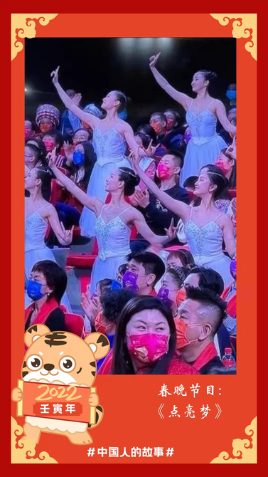 2022年的央视春晚上,零点钟声一过,一曲冬奥主题歌曲《点亮梦》唱出了红火中国年与冰雪冬奥会相遇的喜悦与期待。“梦,全都点亮每个角落,每个地方;心,连在一起,汇聚成爱的力量……奥林匹克的相逢,七彩的天空,最美的夏和冬,奥林匹克我和你再次相拥在一起,跨越关山万重……”伴随着悠扬的歌声,观众席中,28名来自中国残疾人艺术团的演员和2名手语老师用手语一起无声地伴唱。这已是中国残疾人艺术团连续第三年登上央视春晚的舞台。