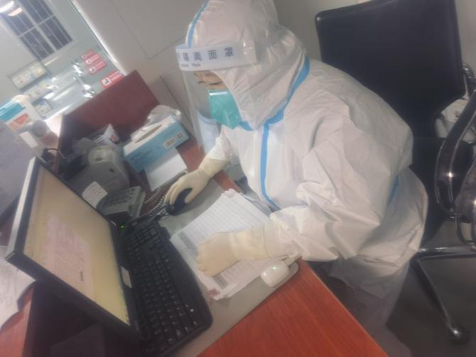1月31日凌晨,杭州市富阳区第一人民医院护士周璐琪在发热门诊值夜班。(新华社发 受访者供图)
