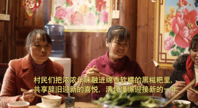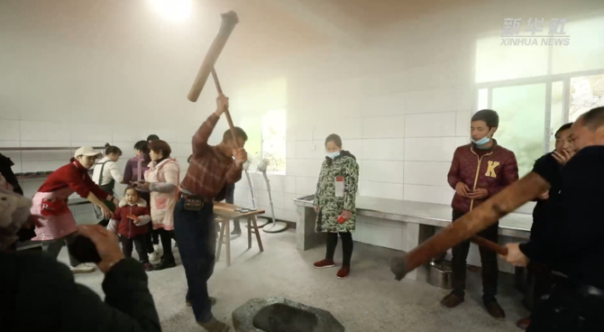湖南会同县高椅古村,每到春节,高椅古村的乡亲们就会聚在一起打黑糍粑,以此迎接春天的到来。高椅的村民们把浓浓年味融进绵香软糯的黑糍粑里,共享辞旧迎新的喜悦,满怀憧憬迎接新的一年。