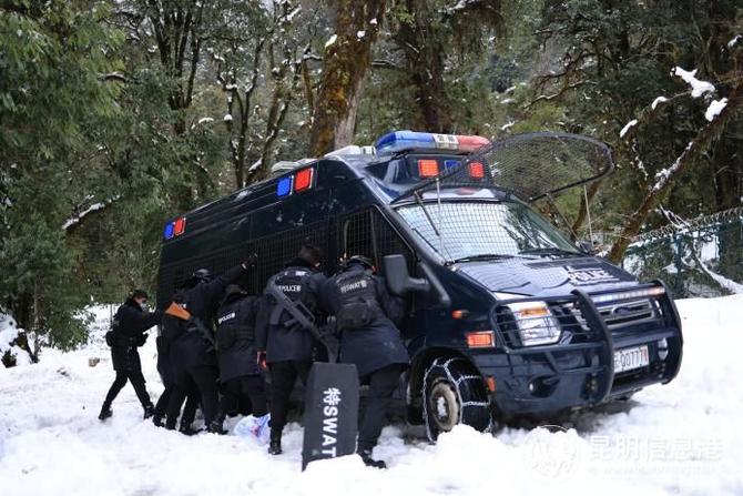 计划不变!虽然山上下起大雪,但是队员们还是决定上山巡边。除夕一大早,队员们就带着装备和自热饭出发了。驱车至十八公里景区,在前面开道的铲雪车陷在雪地里,铲雪车司机和巡逻队队员们忙活了半天,大家接受了那个虽然早有准备但还是有些无奈的事实:接下来的路,只能步行了。穿上大衣,戴好护目镜,拿上装备和物资,大家就地停车,列队开始徒步巡逻。