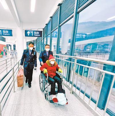 “爸,妈,我们在这里。”刚下动车,张欣雨迫不及待地大步走出车站,向人群中她的父母打招呼。两位老人接过外孙,又亲又抱,喜出望外。