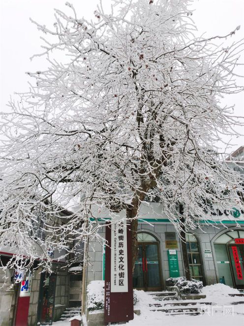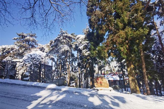 在庐山如琴湖景区,游客竞相拍照留影,把这玉洁冰清的雪景定格在相机和手机中。冬季庐山,白雪皑皑,雾凇冰挂蔚为壮观,加上庐山有许多红色屋顶的居民房,红白相间,仿佛童话世界一般。匡山冬韵美,处处是风景。