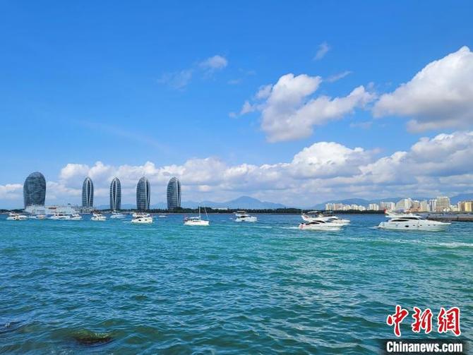 三亚的游艇游在春节假期前就已经升温。图为密集回港的游艇。 王晓斌 摄