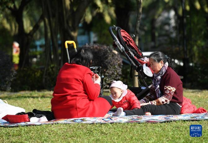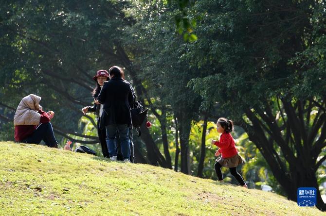 2月4日,市民在广西南宁市南湖边的绿地上休闲。
