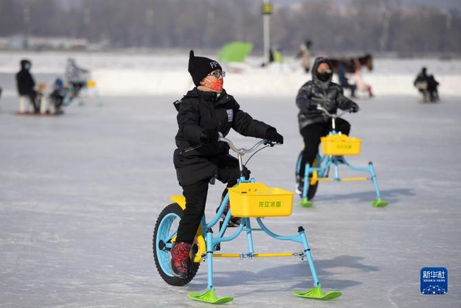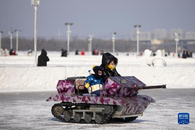 当日是农历大年初二,在冰城哈尔滨,人们来到户外,与冰雪为伴,欢度春节假期。