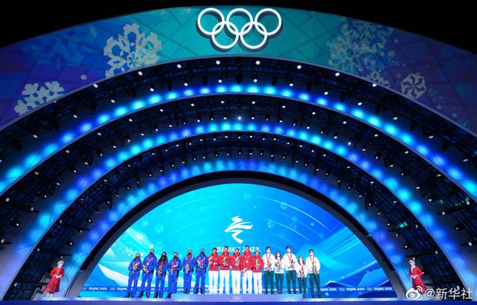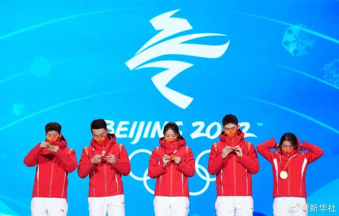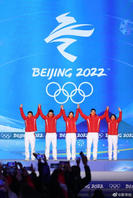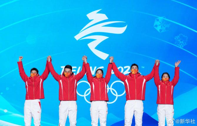 【中国短道速滑队登上最高领奖台】2月6日,北京2022年冬奥会短道速滑混合团体接力奖牌颁发仪式在北京赛区颁奖广场举行,获得冠军的是中国短道速滑接力队。转发高清大图,看中国健儿登上最高领奖台,看五星红旗高高飘扬!