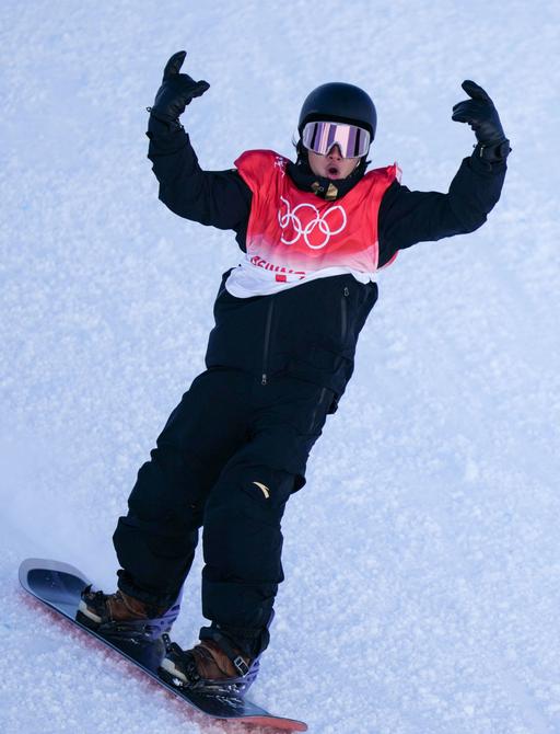 2月6日,中国选手苏翊鸣在比赛中。当日,北京2022年冬奥会单板滑雪项目男子坡面障碍技巧资格赛在张家口云顶滑雪公园举行。新华社记者薛玉斌摄