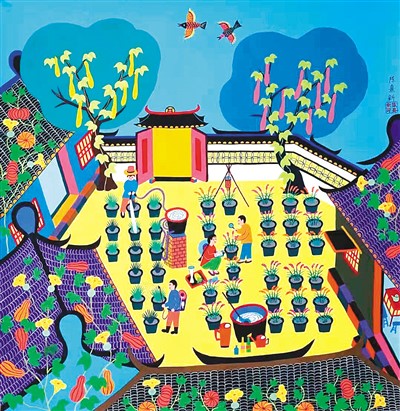 从事IT工作的陈熹新,业余喜欢画画。这次,他的《新农民,新农业》在上海联展活动中展出。画面上,上海市郊的农家院子里,农民们正忙着种植当季的各色花卉。“随着时代的发展,农村农业结构也发生了深刻变化,农民们不再只是种粮食,还发展起花卉种植产业。”陈熹新说,这些都是他亲眼所见的变化。