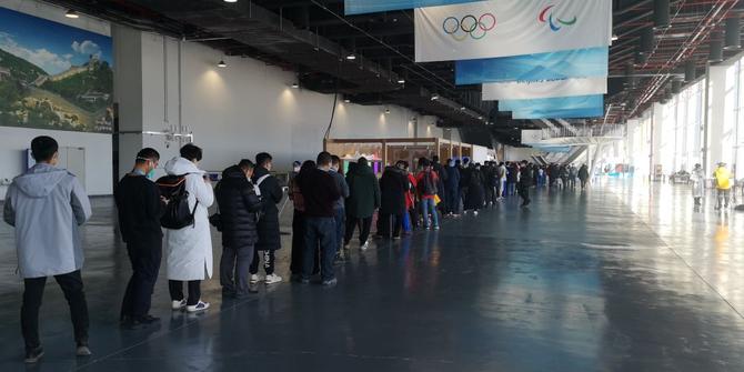 主媒体中心的冬奥特许商店门外也排起了队⬇️