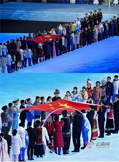 2月4日晚,北京冬奥会开幕式举行。鸟巢中央,一面五星红旗在12位小朋友手中徐徐展开,随后国旗经由各行各业先进模范人物、56个民族代表一双双炽热的双手传递给国旗班,五星红旗冉冉升起,把开幕式推向了高潮。国旗传递过程中有两名代表来自元江哈尼族彝族傣族自治县,分别是拉祜族女孩李思潼和哈尼族小伙段顺强。