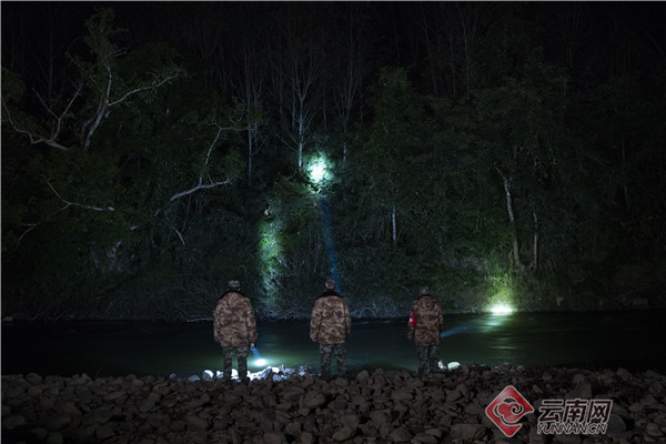 “春节期间,沿岸的卡点每晚都增加了两趟巡逻”切排说,近期,打洛江的水位逐渐下降,很多河段的河床透水可见,浅的地方江水甚至没不了膝盖,必须加强巡逻才能尽可能消除隐患。