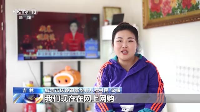 吉林省蛟河市庆岭镇新华村八社村民 沈楠:以前冬天吃不到的热带水果,我们现在在网上网购,两三天就给我们送到家了。