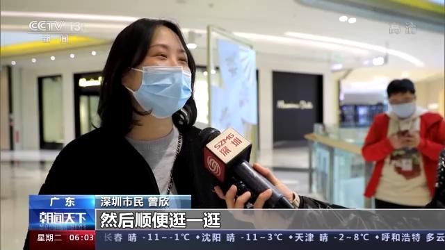广东深圳市民 曾欣:刚好生日跟家里人出来吃个饭,顺便逛一逛。我刚才吃饭用的优惠,直接减了几十块钱,觉得挺好的。