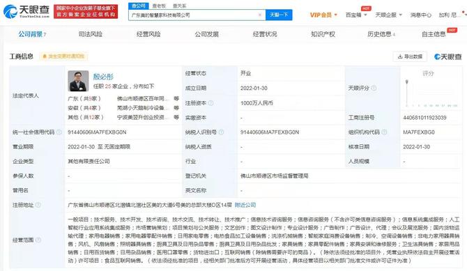美的在广东成立两家智慧家公司 经营范围含信息系统集成服务