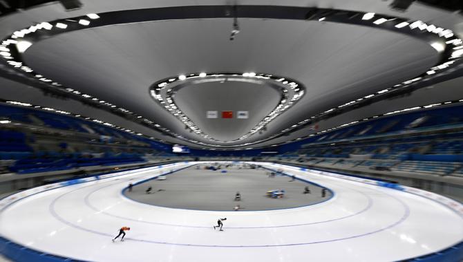 中国国家速滑馆内景,被称为“冰丝带”(中国日报记者 魏晓昊摄)
