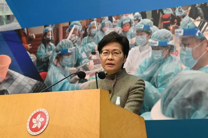 2月4日,香港特区行政长官林郑月娥在新闻发布会上。资料照片